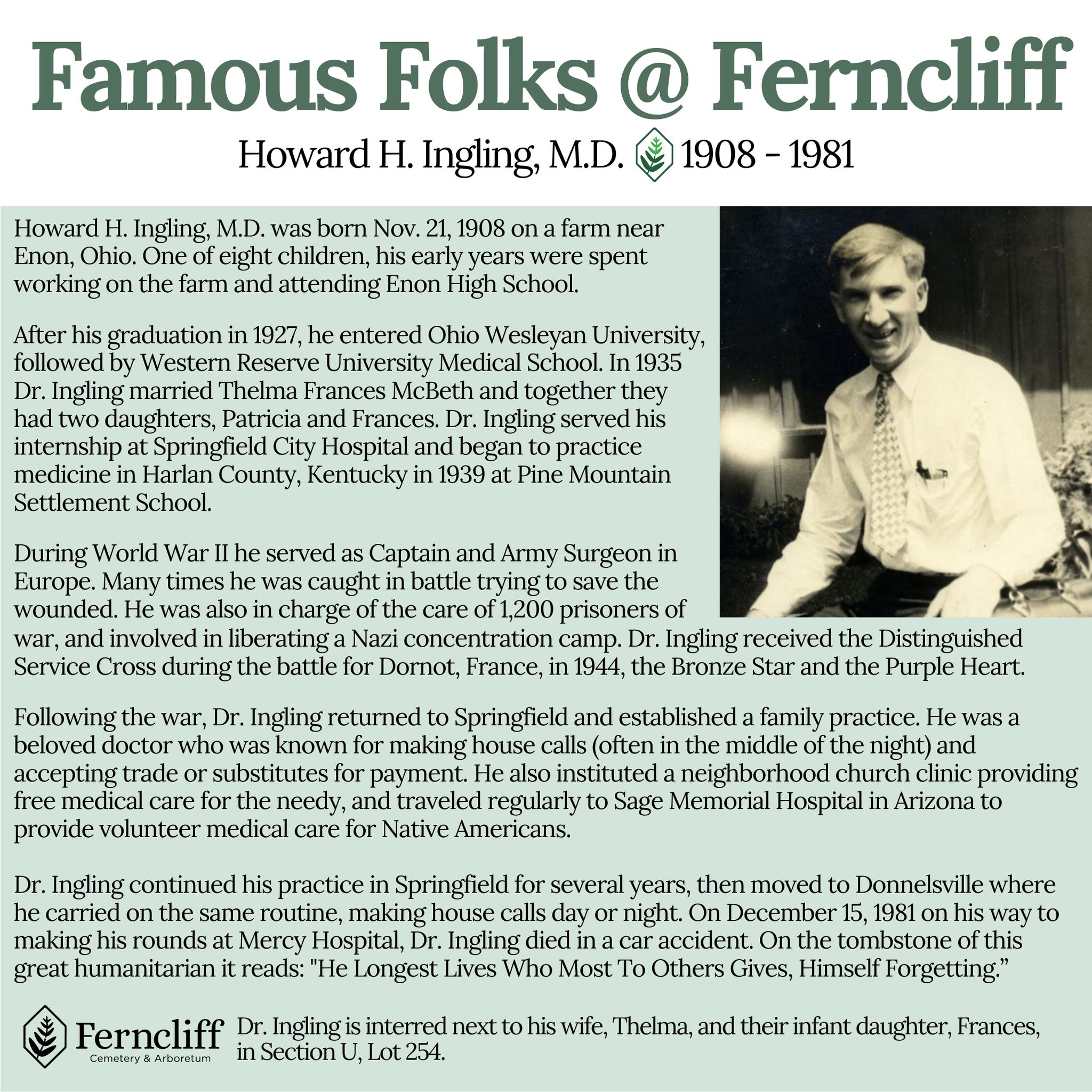 Howard H. Ingling, M.D. was born Nov. 21, 1908 on a farm near Enon, Ohio. One of eight children, his early years were spent working on the farm and attending Enon High School.